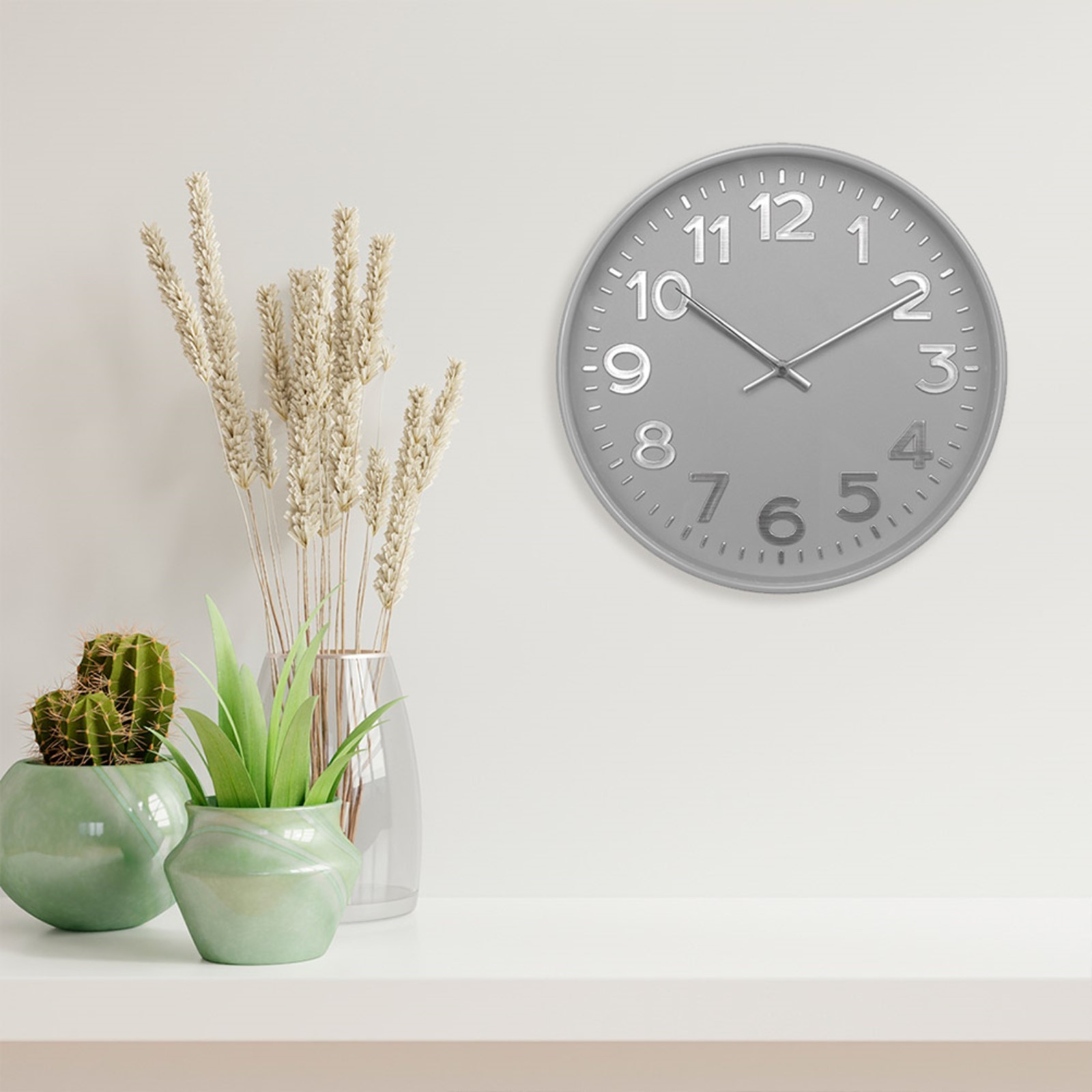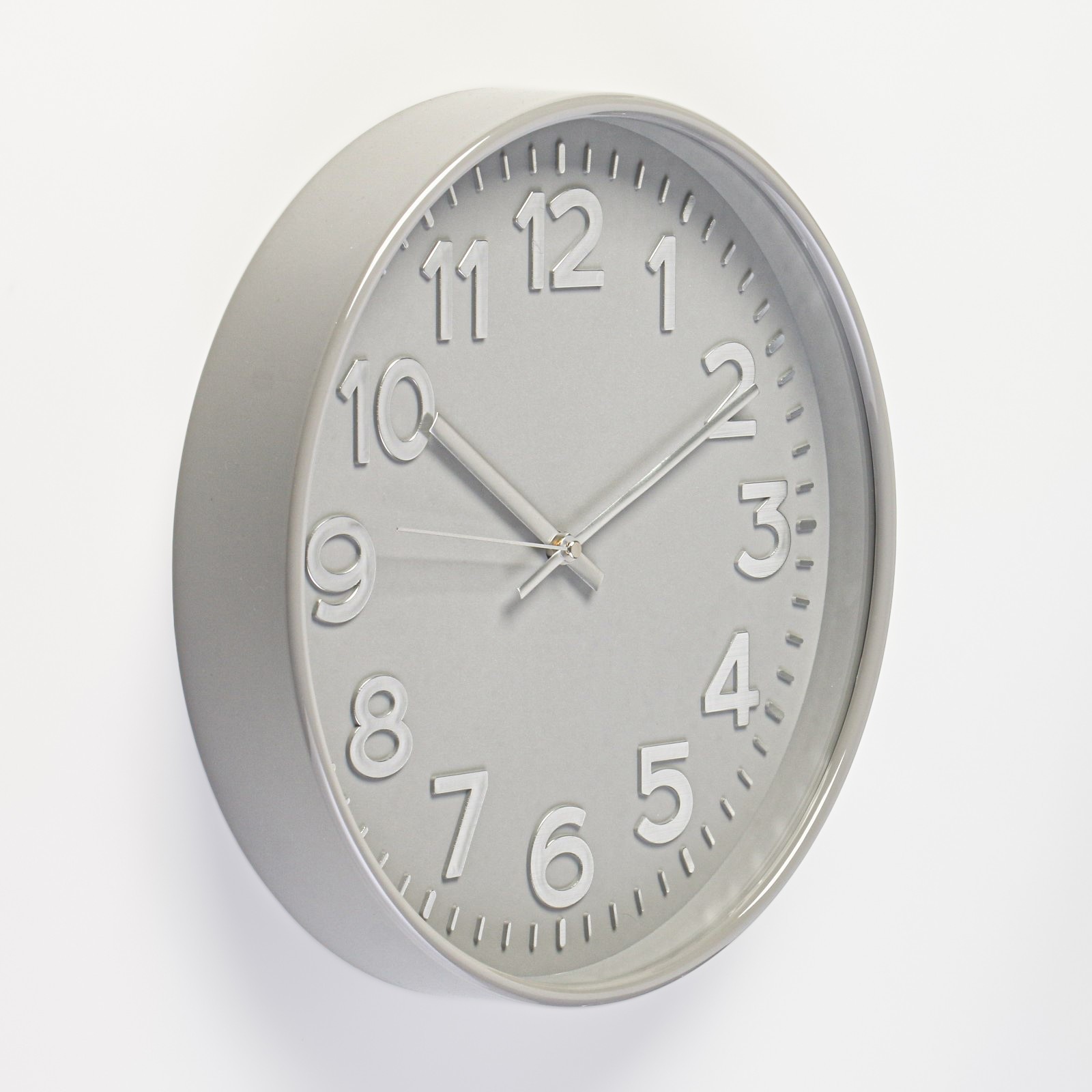 Настенные часы выполнены в универсальном стиле для любых интерьеров. Циферблат оснащен крупными арабскими цифрами. Время отображается при помощи трех стрелок (часовой, минутной и секундной).