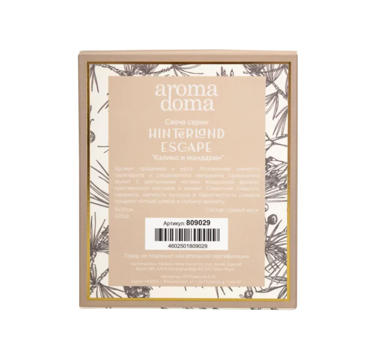 АРОМА ХИНТЕРЛЭНД, свеча ароматическая, калико и мандарин