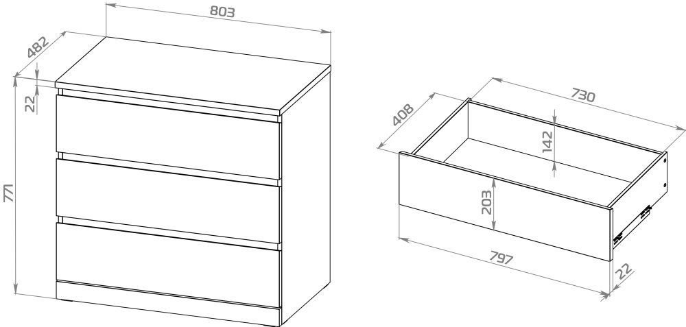 Серия мебели ВАРМА вдохновлена популярными сериями MALM и BILLY от IKEA, и станет идеальным дополнением вашей квартиры. Лаконичный дизайн комодов гармонично впишется в любой интерьер, а компактные размеры не займут много места.