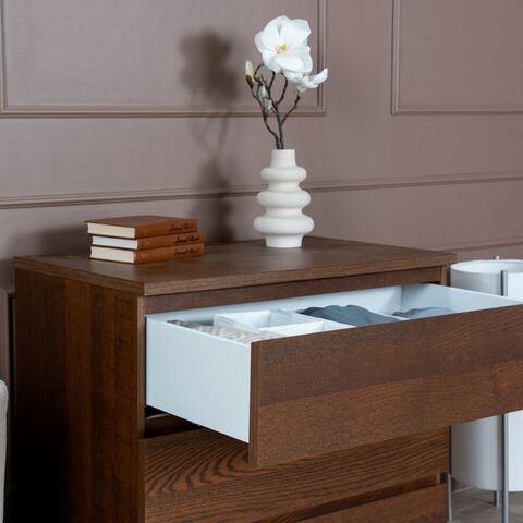 Комод ВАРМА — это не просто место для хранения, а настоящий акцент в интерьере. Он подойдет для спальни, гостиной или прихожей, помогая поддерживать порядок и создавая атмосферу уюта. Он станет надежным и стильным спутником на долгие годы.