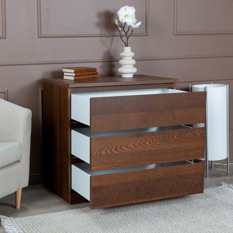 Почему выбирают комод ВАРМА ПРАЙМ 3 ящика 80х77х48? Комод ВАРМА ПРАЙМ — ультимативный комод, который позволяет организовать хранение всех необходимых вещей – в верхние необходимые мелочи, чтобы были всегда под рукой, в других – подушек, одеял, белья или одежды, ведь благодаря глубине и максимальной нагрузке 8 кг они подходят для любых целей. А на столешнице комода можно поставить все, от рамок и ваз до аквариума – ведь максимальная нагрузка на нее целых 15 кг! Компактный размер позволяет разместить его в небольших пространствах. Комод ВАРМА представлен в трех вариантах: