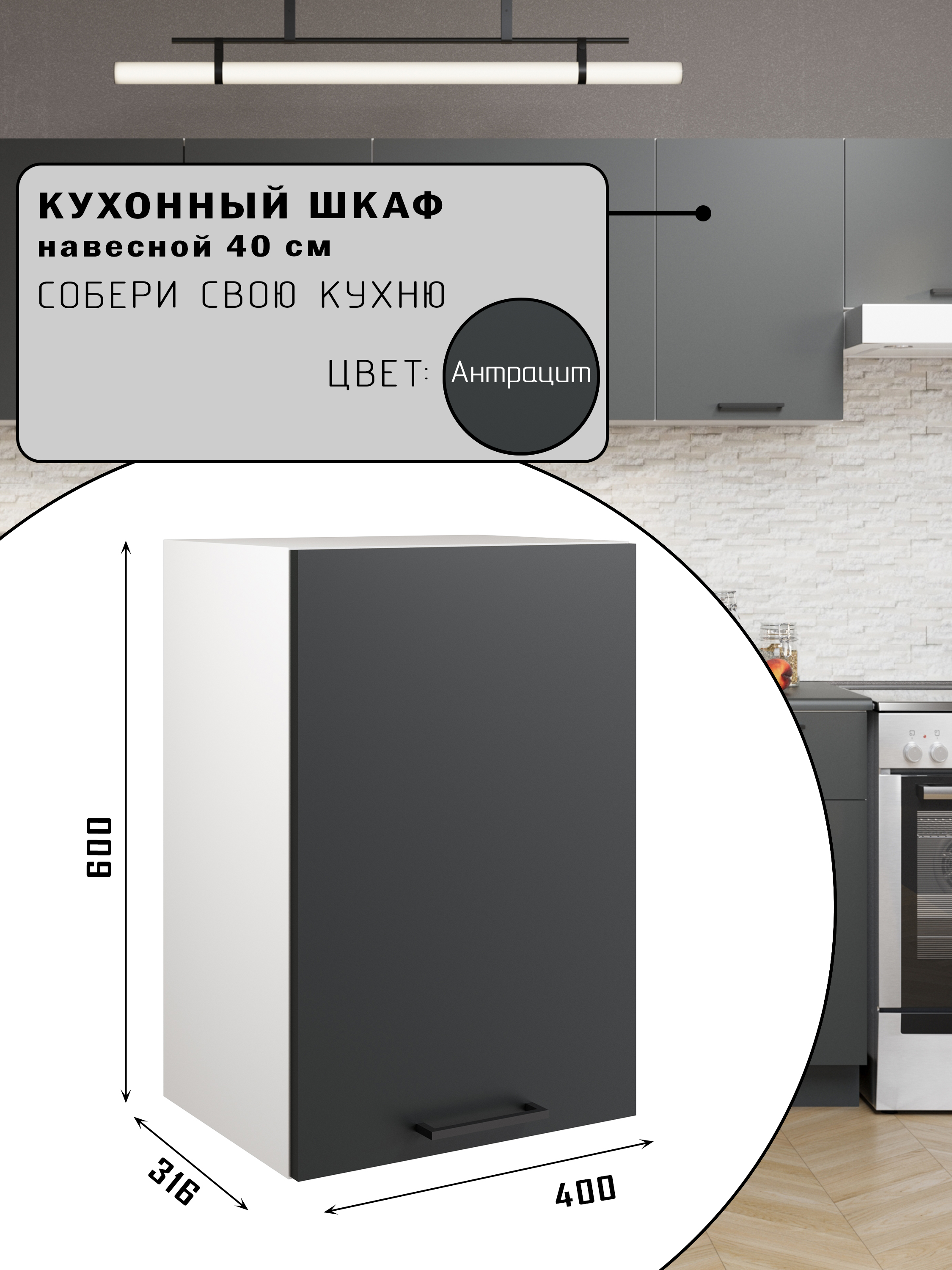 СИМПЛ, шкаф навесной, 40х60 см, антрацит