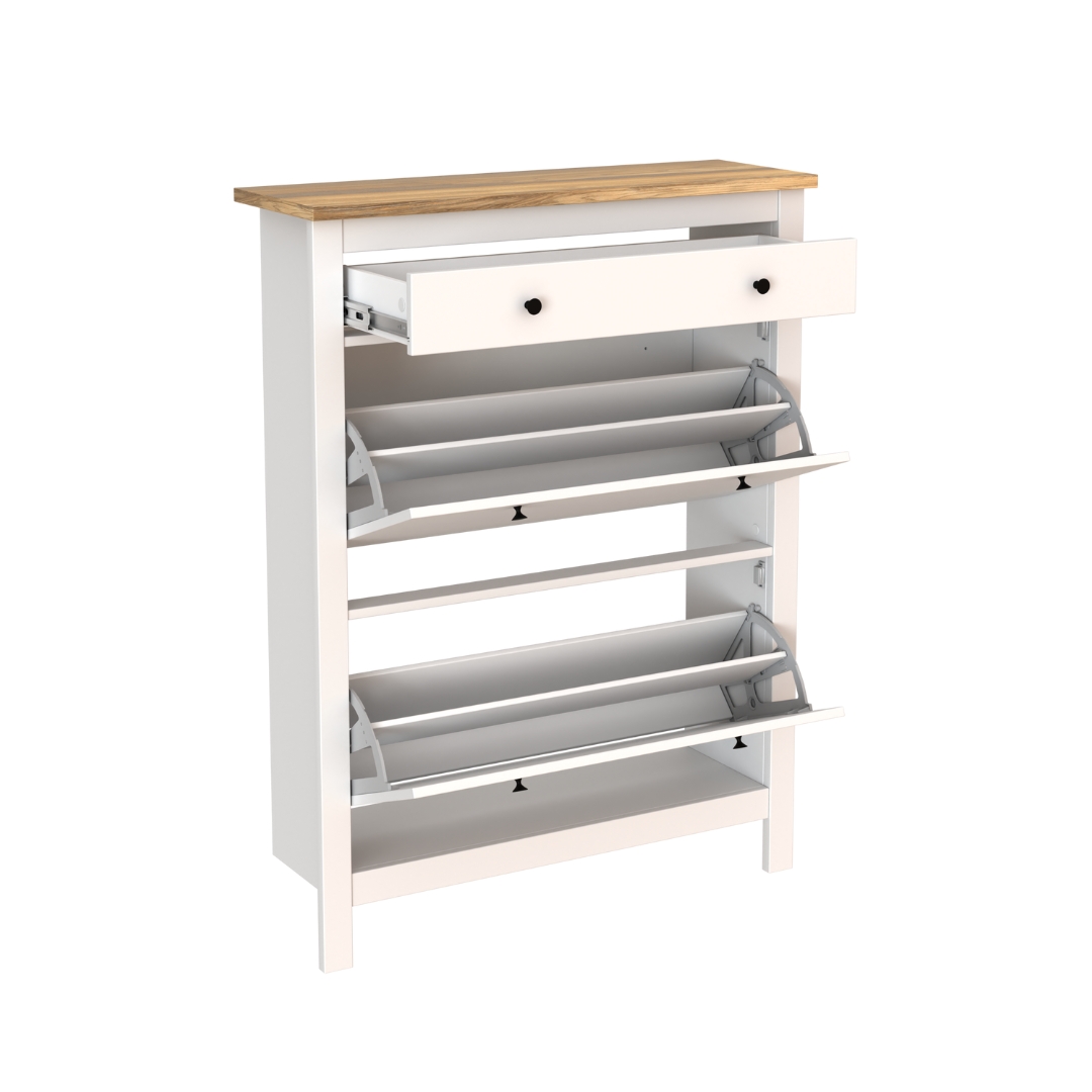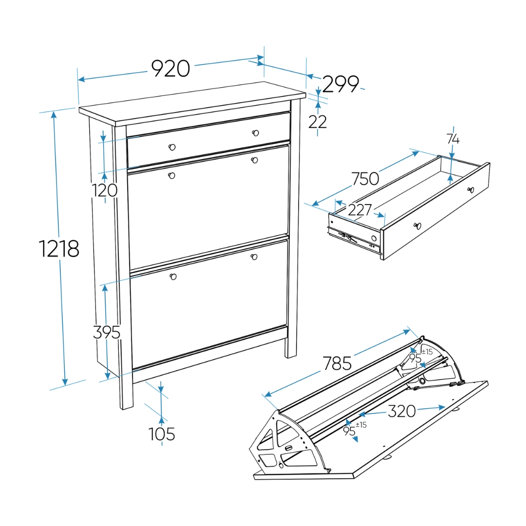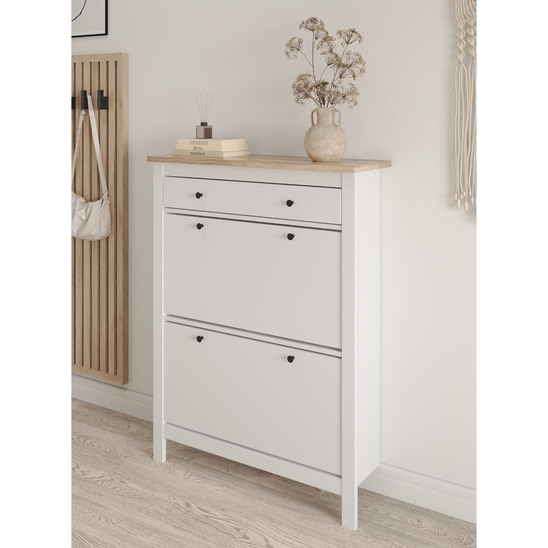 У тумбы САГА 92х122 см имеется один выдвижной ящик для различный мелочей и два отсека для обуви — идеальное решение для компактной прихожей. Обувница оснащена надежными магнитными фиксаторами, которые обеспечивают безопасность и предотвращает случайное падение полки. Вы можете быть уверены, что обувь останется на своем месте.
