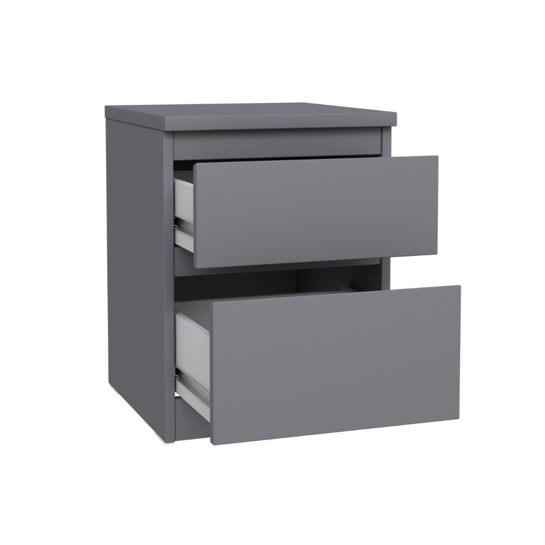 Прикроватная тумба КАСТОР с 2 ящиками станет идеальным дополнением вашей квартиры. Её лаконичный дизайн гармонично впишется в любой интерьер, а компактные размеры не займут много места. Выдвижные ящики оснащены шариковыми (телескопическими) направляющими, которые выдерживают большую нагрузку, имеют плавный ход и служат дольше.