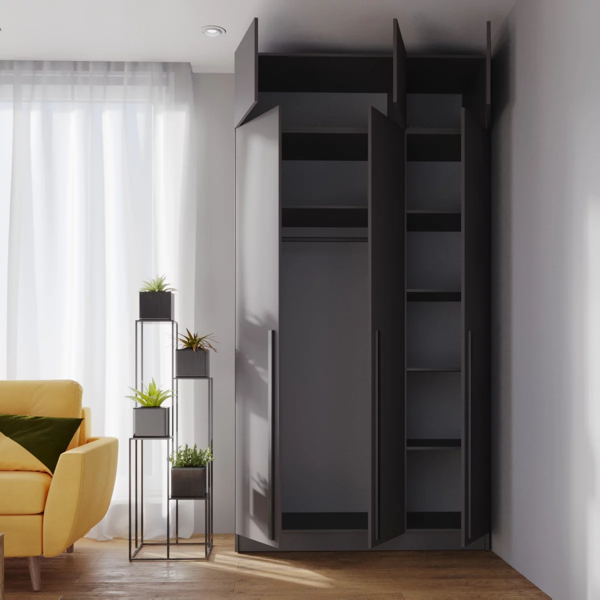 - Эстетика и чистота: помимо своих функциональных качеств, антресоль убирает визуальный шум интерьера и защищает от накопления пыли над шкафом.