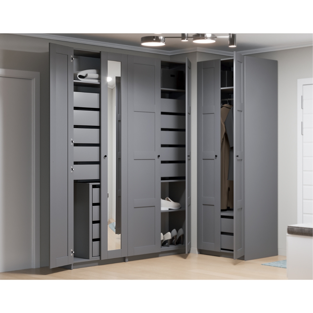 Выберите нужные каркасы, двери и наполнение — в результате вы получите гардероб, идеально подходящий для вашего дома и ваших вещей.