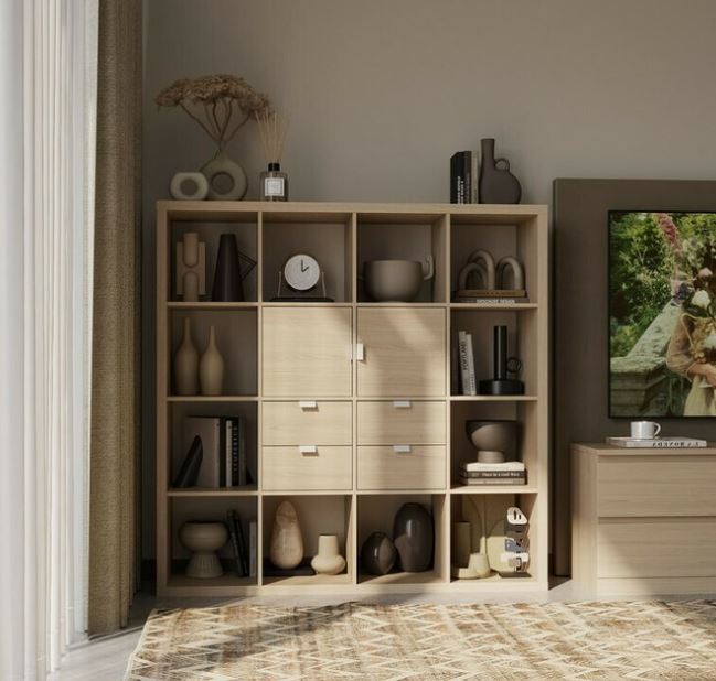 Стеллаж можно дополнительно комплектовать: полками, выдвижными ящиками, дверцами.
