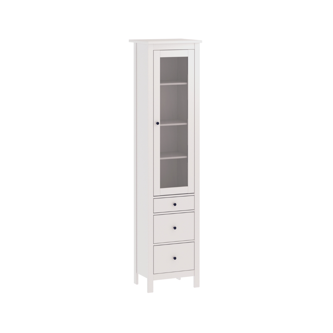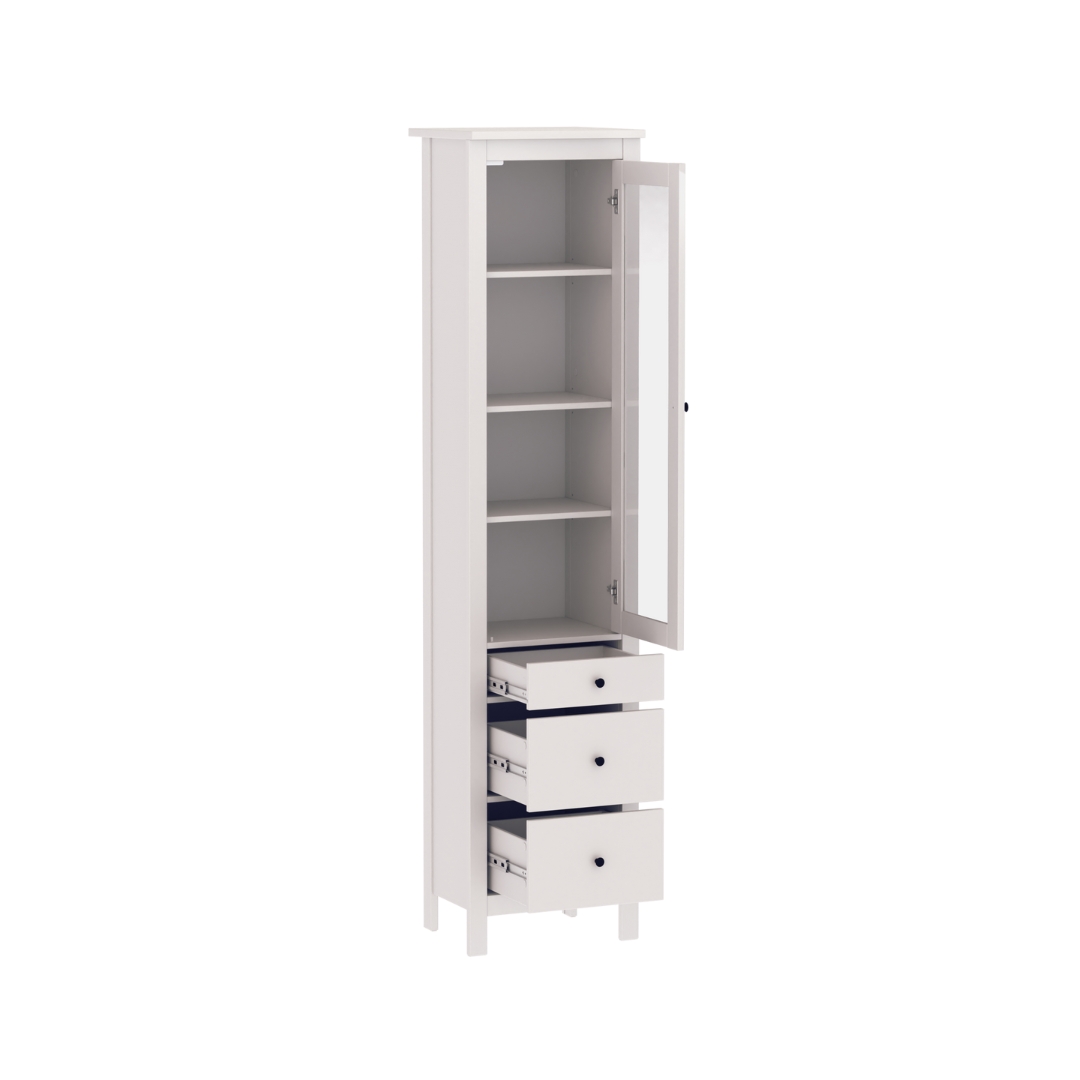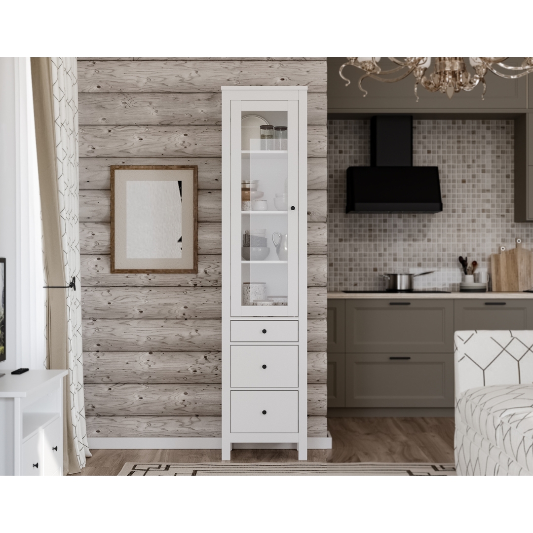 Шкаф-витрина САГА оснащена 3 вместительными полками, которые можно отрегулировать по высоте, а также 3 выдвижными ящиками. Это позволяет гибко организовать пространство для хранения.