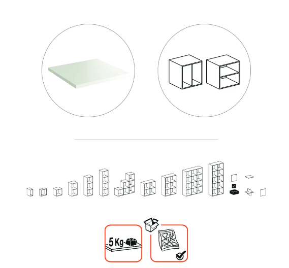 Внимание: подходит только для стеллажей SPACEO KUB. Если вы приобрели стеллаж без маркировки Spaceo KUB, полка может к нему не подойти.