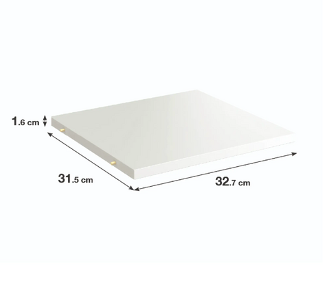 Полка Kub предназначена для хранения одежды, белья или обуви общей массой не более 5 кг. Изделие выполнено из ЛДСП в виде прямоугольной плиты шириной 32,7 см, глубиной 31,5 см и толщиной 16 мм. Цвет — белый.