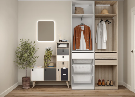 В стенках предусмотрены отверстия для дополнительных полок или крестовых вставок. Неиспользуемые отверстия закрываются мебельными заглушками.