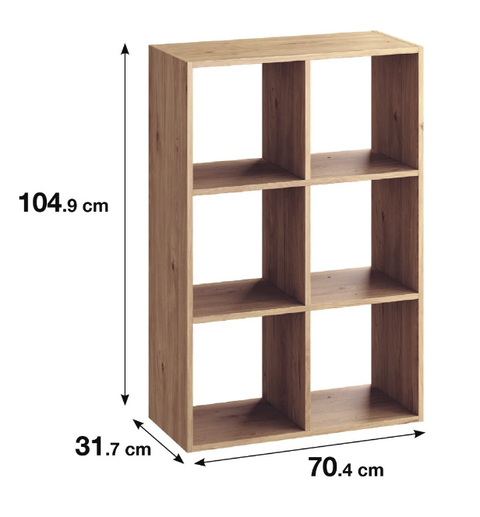 СПЕЙСИО КУБ, стеллаж, 6 секций, 70х104х31,7 см, дуб