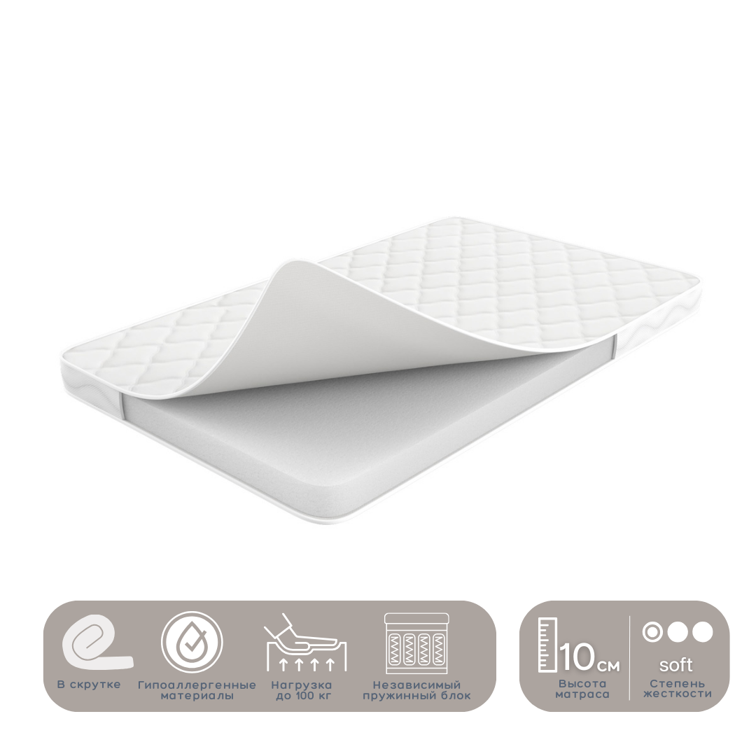Беспружинный матрас, представляет собой блок высокоэластичного пенополиуретана — экологически безопасного материала, отличающегося высокой степенью износостойкости, комфортной жесткостью, практичностью, не вызывает аллергии, обеспечивает хорошую поддержку позвоночника во время сна и отдыха, дарит расслабление.