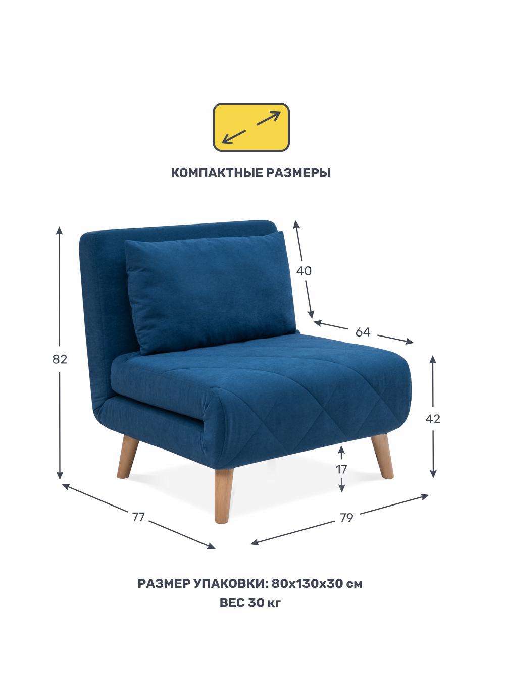 Кресло-кровать ЭЛЛИ отличается своей компактностью и функциональностью. Модель идеально подойдёт для небольших помещений, балконов, прихожих или детских комнат.