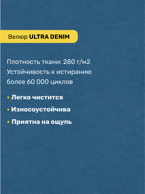 Обивка устойчива к истиранию, по тесту Мартиндейла более 60 000 циклов, это обеспечит долгий срок службы и простой уход. Тактильная поверхность с супермягким ворсом сделает ваш отдых незабываемым.