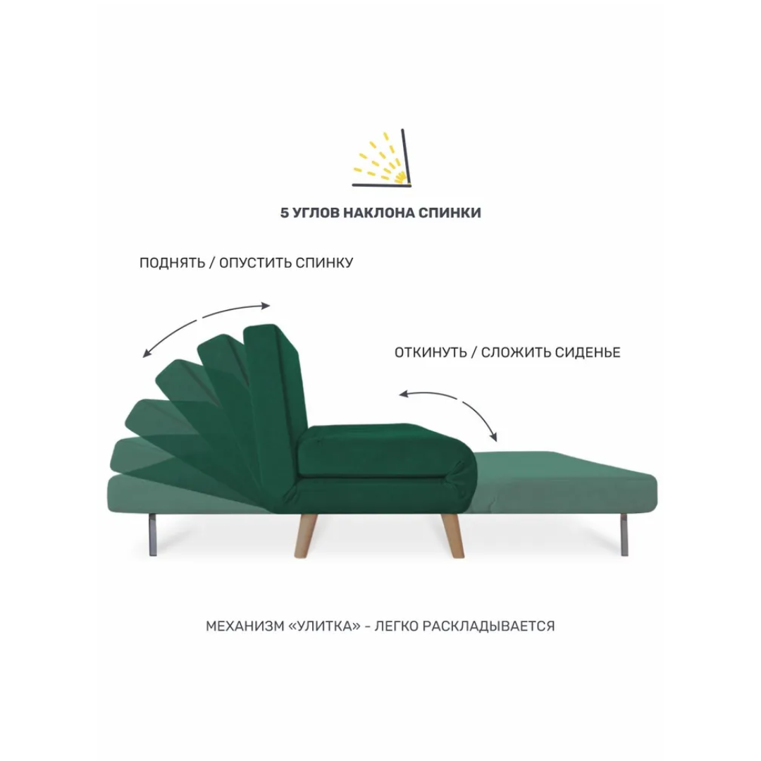 Механизм трансформации улитка - очень прост в использовании, спинка имеет 5 положений: вертикальное «сидя», три дополнительных положения «релакс» и положение «лёжа».
