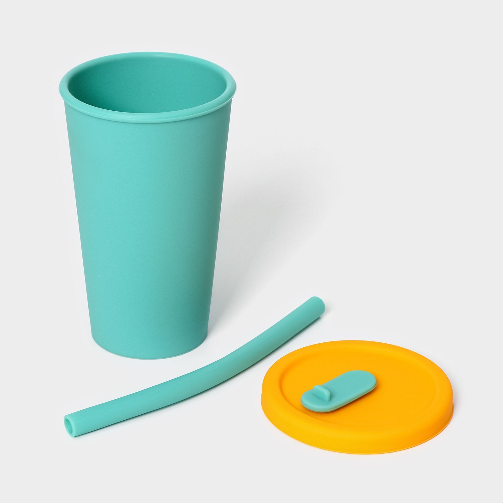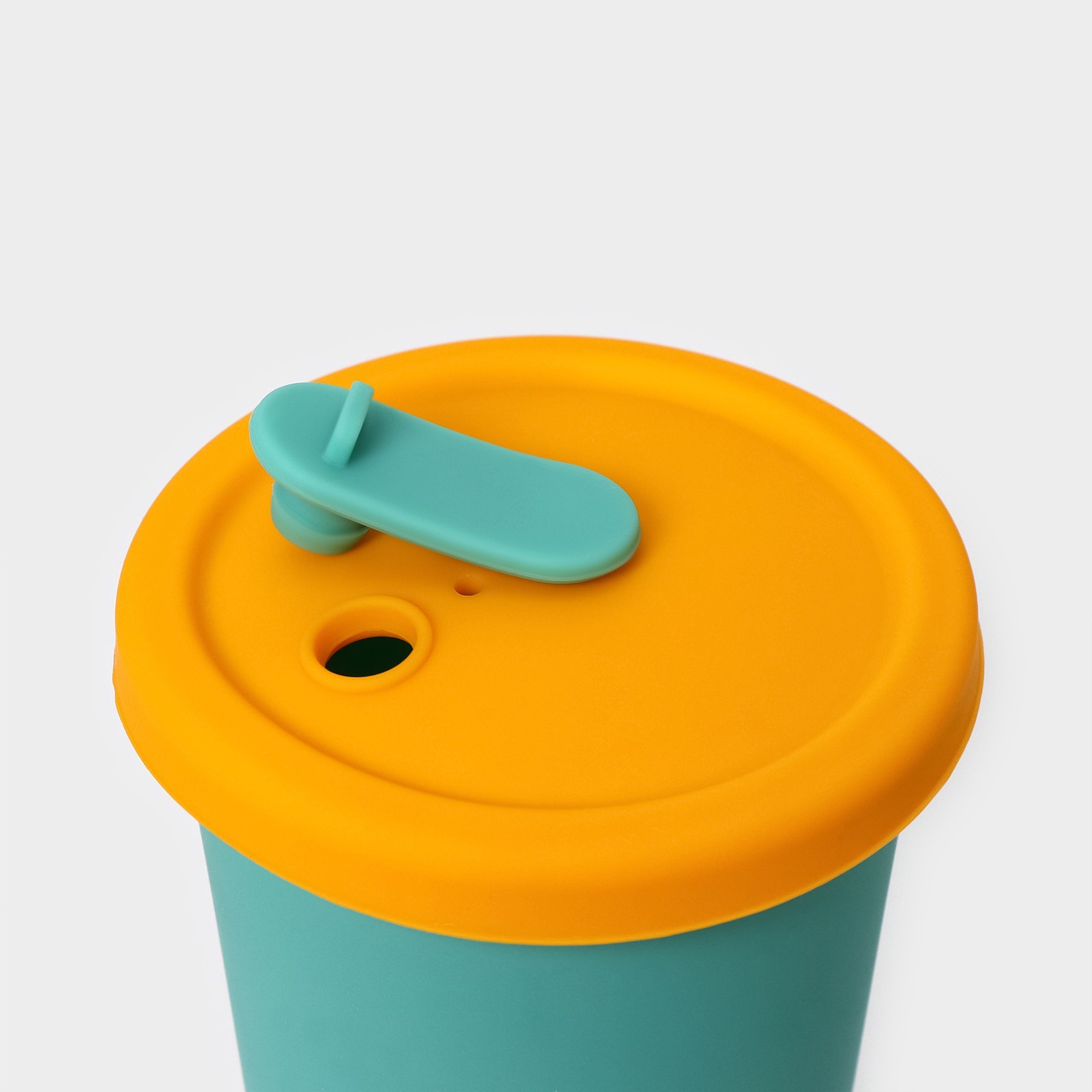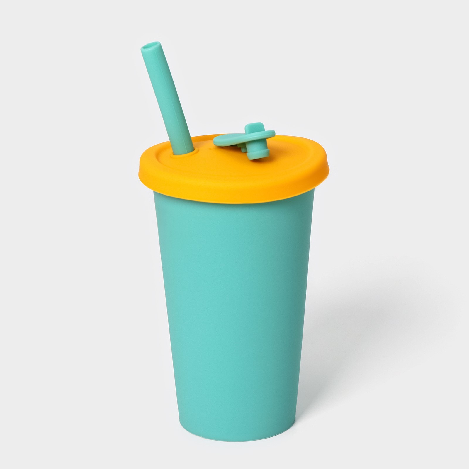 ДРИНК, стакан с крышкой и трубочкой, силикон, 350 мл, зеленый/желтый