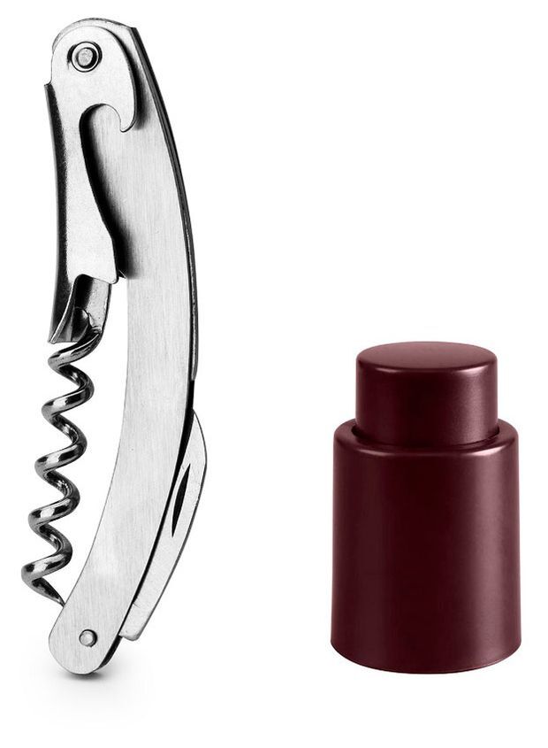 Набор пробки и штопора в подарочной коробке является отличной идеей для подарка. Стальной штопор сочетает в себе 3 предмета: штопор, открывалка и нож. Вакуумная пробка для вина обеспечивает герметичность бутылки, сохрананяя свежесть напитка.