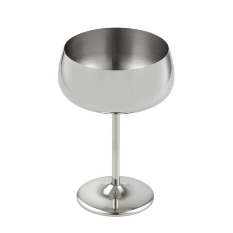 Стильный бокал из серии Eternal выполнен из качественной и долговечной нержавеющей стали. Универсальный бокал идеально подойдет для вина, коктейлей, лимонада, шампанского, сока, ликера, мохито, а также для других крепких алкогольных напитков. Металлическая рюмка на ножке подходит для сервировки стола дома, на кухне, празднике, вечеринке, а также для бара. Бокалы можно мыть в посудомоечной машине.