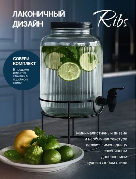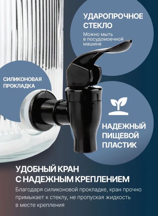 ✔ Вместимость 4 литра – идеально для лимонада, холодного чая, морса и других напитков.