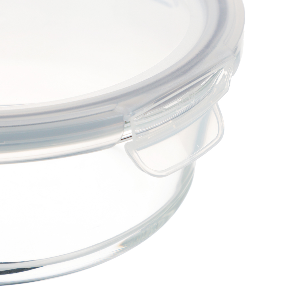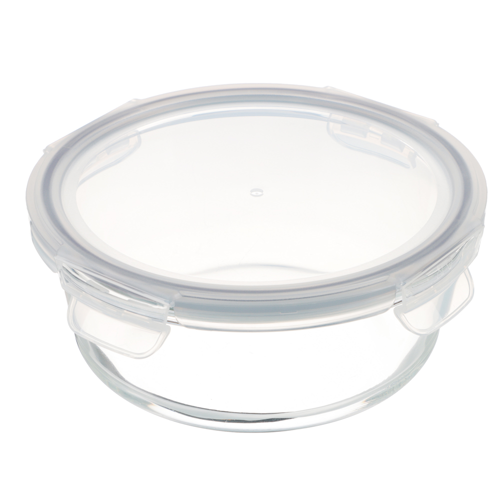 Контейнер для хранения продуктов изготовлен из жаропрочного стекла, крышка из пищевого пластика. Для более надежного крепления и сохранения герметичности на крышке имеются удобные защелки.