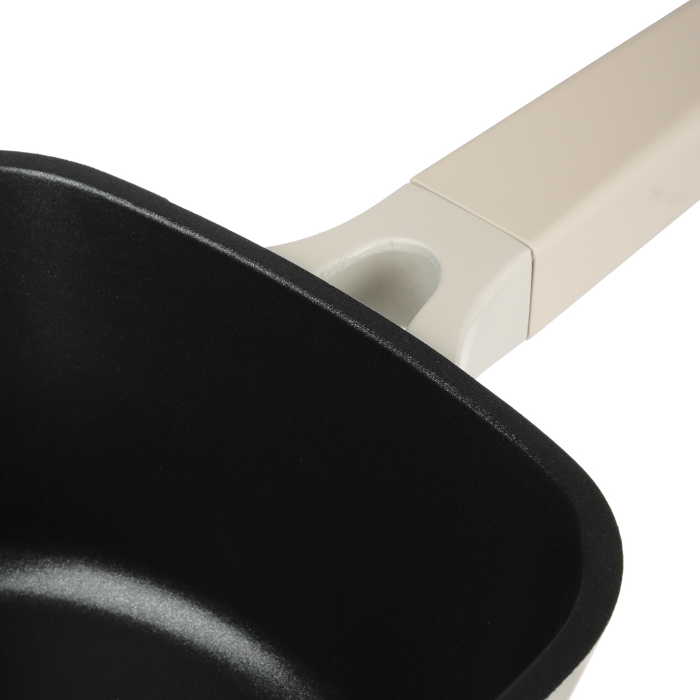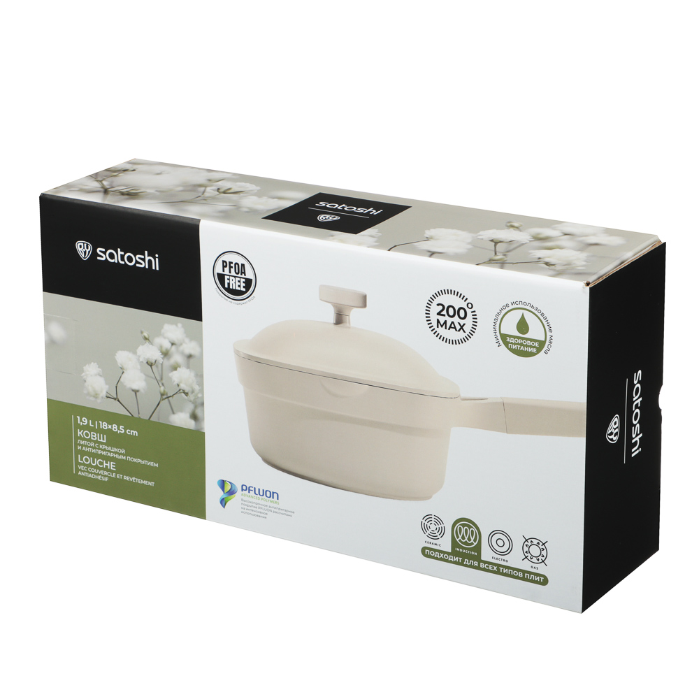 Ковш с крышкой литой Мулон, объем 1,9 л, размер 18х8,5 см – это практичная стильная качественная посуда для приготовления, которая станет незаменимым помощником на домашней кухне. Ковш удобен для варки каш, яиц, гарниров, а также для приготовления соусов и вторых блюд методом тушения. Толстое дно не деформируется, постепенно нагревается, долго держит тепло и способствует равномерному приготовлению блюд. Стойкое безопасное антипригарное покрытие PFLUON не содержит PFOA и выдерживает длительный нагрев до 200℃. Подходит для приготовления полезных и диетических блюд с использованием минимального количества масла. Фиксированная ручка имеет эргономичную форму и не нагревается. Ковш легко моется вручную. Лаконичный дизайн в благородном бежевом цвете будет красиво смотреться в интерьере кухни. Подходит для всех типов плит, включая индукционные.