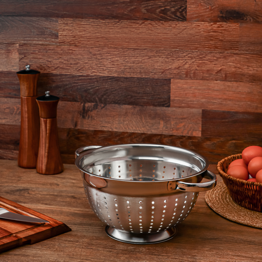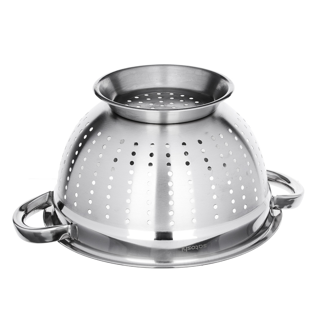 Дуршлаг на ножке незаменим при приготовлении макаронных изделий и картофеля. К тому же в нем очень удобно мыть овощи и фрукты - вода стекает, а благодаря удобной подставке дуршлаг можно поставить на стол.