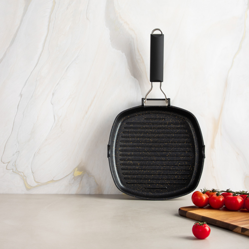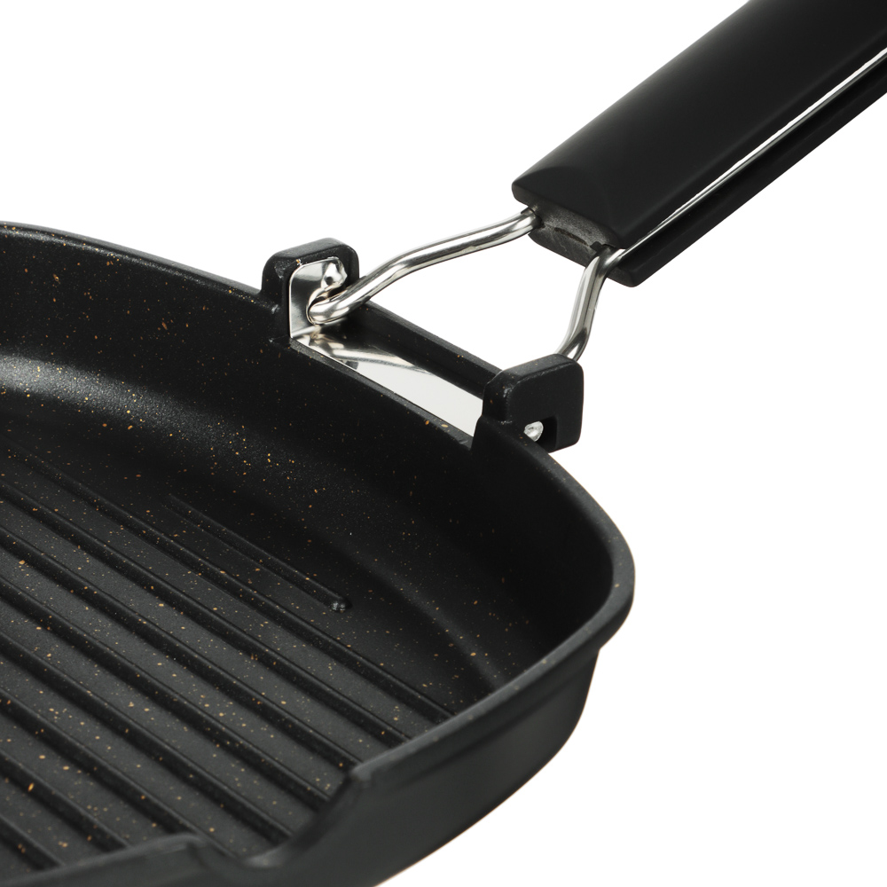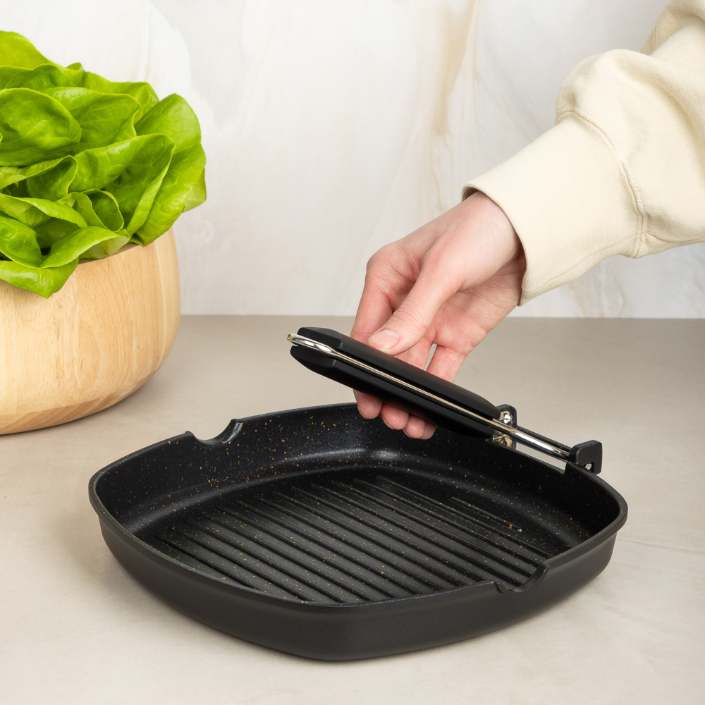 Эргономичная ручка из бакелита с силиконовым напылением, которая складывается для компактного хранения.