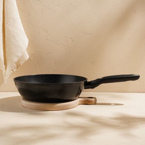 Сковорода алюминиевая SL Home — антипригарное покрытие обеспечивает лёгкость в уходе и сохраняет полезные свойства продуктов. Индукционное дно гарантирует быстрый нагрев и равномерное распределение тепла, а также экономит время и энергию при готовке. Чёрный цвет сковороды придаёт кухне изысканность и элегантность, а также гармонично сочетается с любым интерьером. Толстые стенки и дно обеспечивают равномерное распределение тепла и сохранение сочности продуктов. Подходит для всех типов плит, включая индукционные, что делает её универсальной для любой кухни.