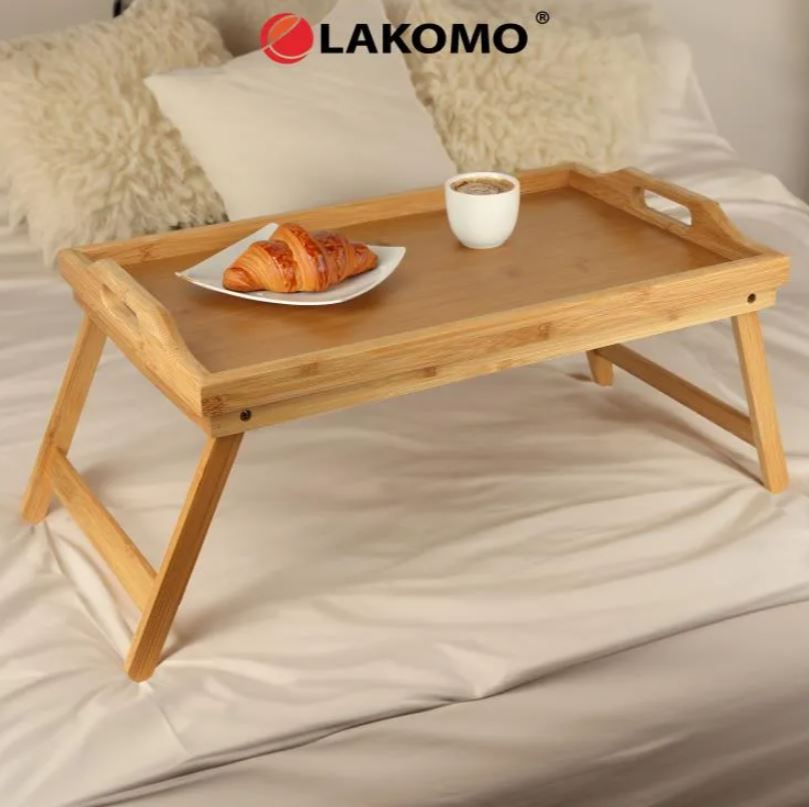 Деревянный столик из бамбука - идеальное решение для сервировки завтрака в постели. Складной и легкий, он оснащен удобными ручками для легкого переноса и устойчивыми ножками, которые обеспечивают стабильность на любой поверхности. Современный дизайн столика делает его стильным дополнением к любому интерьеру. Бортики по краям предотвращают скольжение посуды и обеспечивают дополнительную безопасность при использовании. Прочный и долговечный, этот столик станет отличным подарком для ваших близких, добавляя комфорта и уюта в их повседневную жизнь.