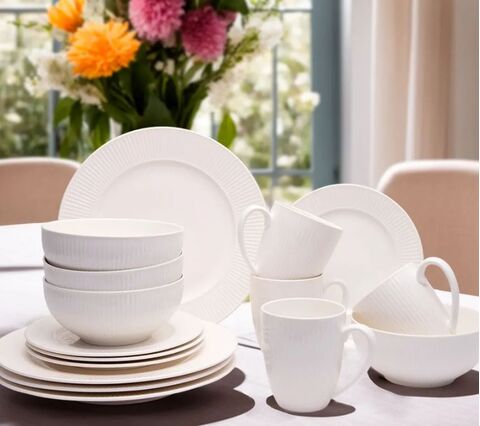 Сервиз столовый JEWEL "Бьянко" 16 предметов. Этот столовый сервиз выполнен из высококачественного материала new bone, который сочетает в себе прочность костяного фарфора и изящность китайского фарфора. Не допускается использовать на открытом огне. Каждая тарелка имеет элегантный дизайн с декоративным краем, который придает им шарм и изысканность. Столовый сервиз "Бьянко" - идеальный выбор для вашего стола.