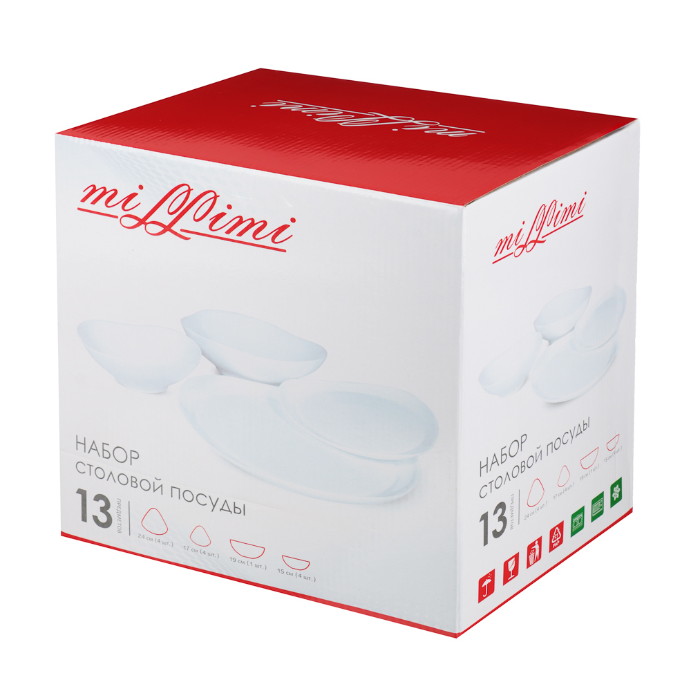 МИЛЛИМИ, набор столовой посуды, 13 пр, треугольный, опаловое стекло, белый