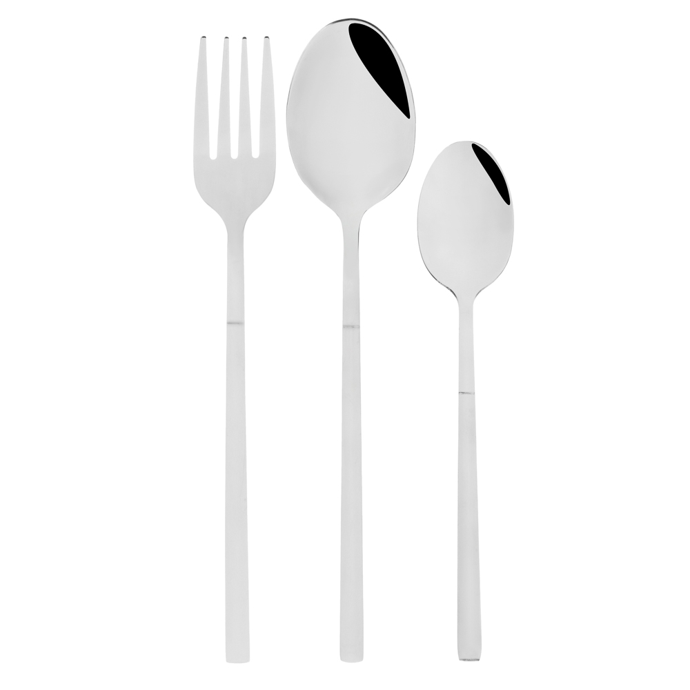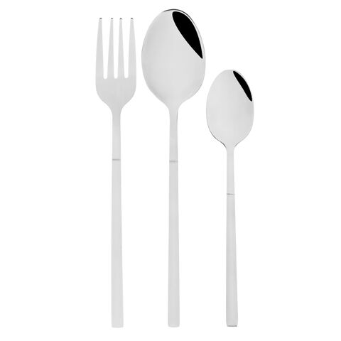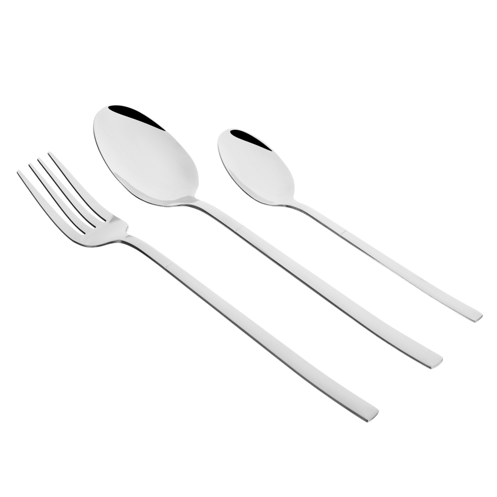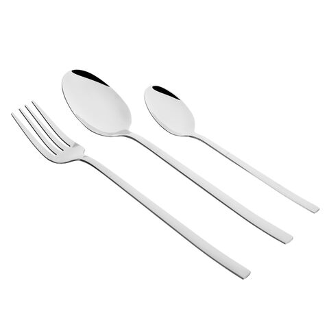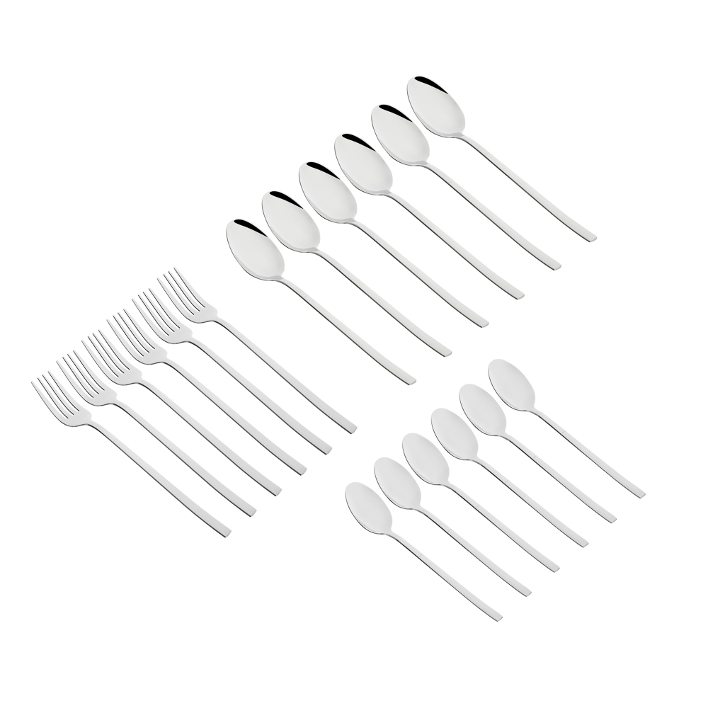 Набор столовых приборов ФЕРРЕ из 18 предметов сочетает в себе современный стиль и классическую сдержанность. Рассчитан на 6 персон и содержит 6 столовых ложек, 6 вилок и 6 чайных ложек. Столовые приборы серебряного цвета смотрятся элегантно и лаконично, а глянцевая поверхность и утонченная форма добавляют особого шарма и выразительности сервировке. Все предметы изготовлены из качественной нержавеющей стали, устойчивой к коррозии, царапинам и деформации. Беспроигрышный выбор для повседневного использования, торжественных приемов, подарка на новоселье, а также для ресторанов и кафе.
