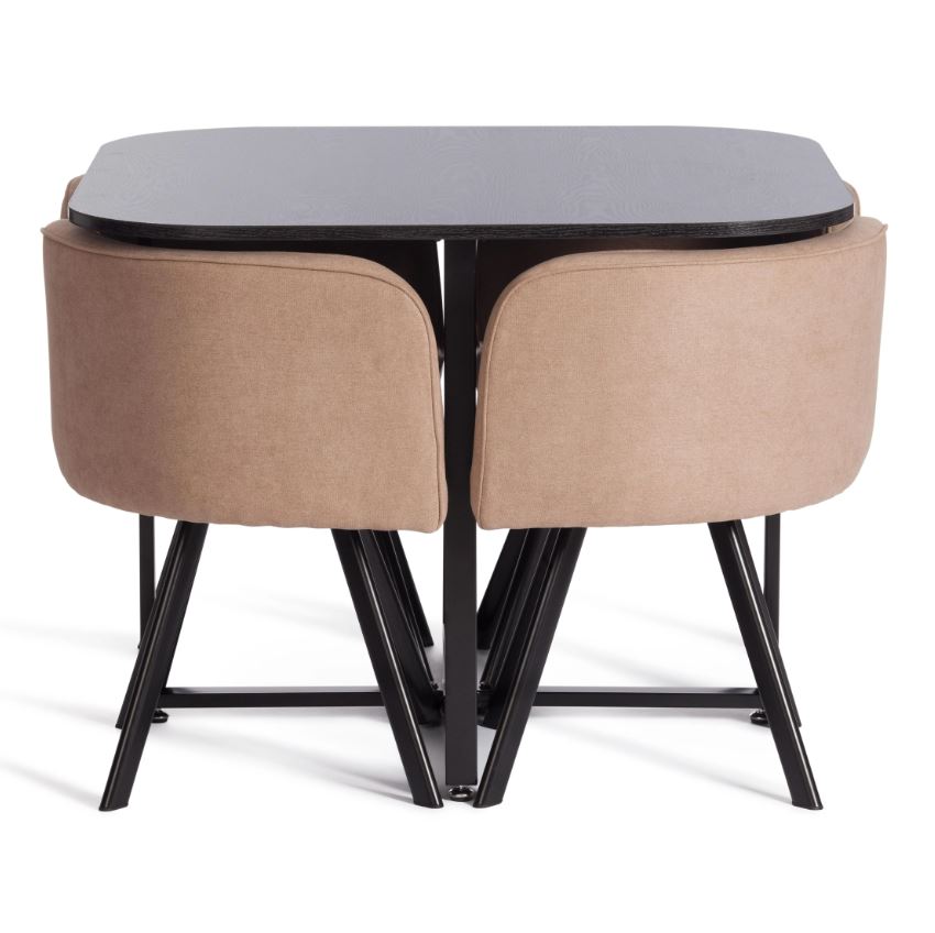 КВАТРО, обеденный комплект, стол и 4 стула, 100х100 см, черный/бежевый