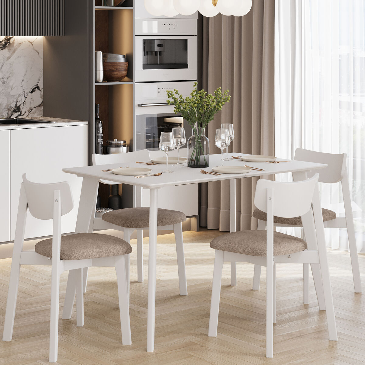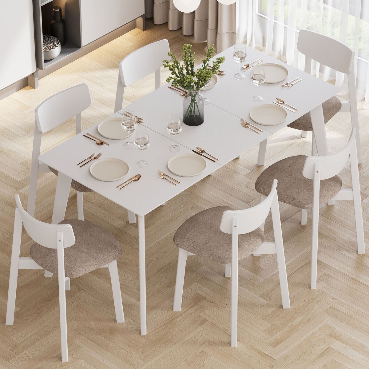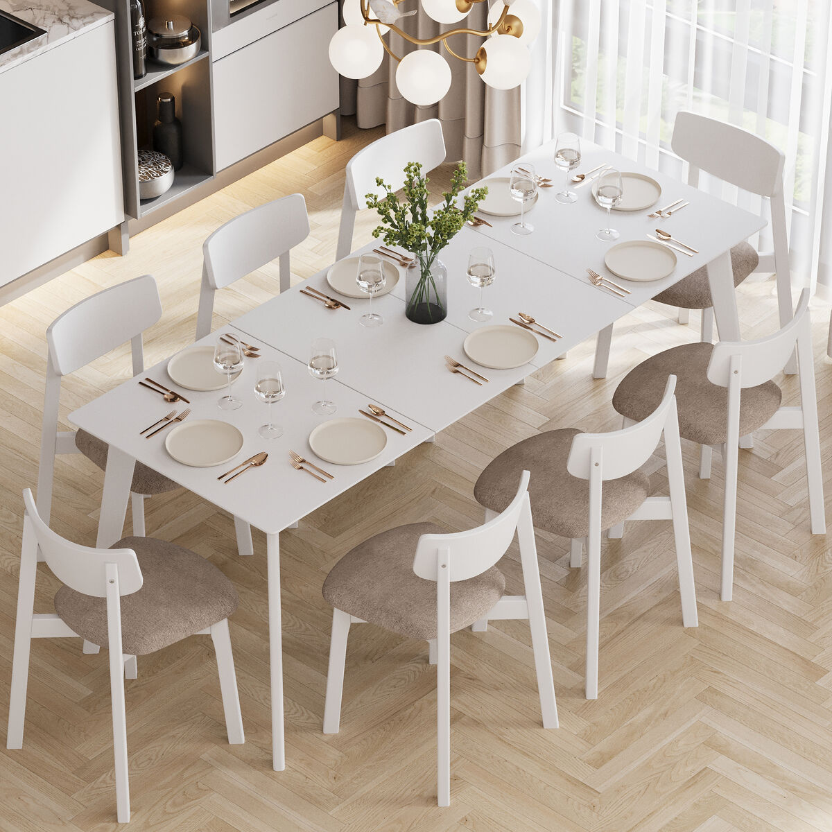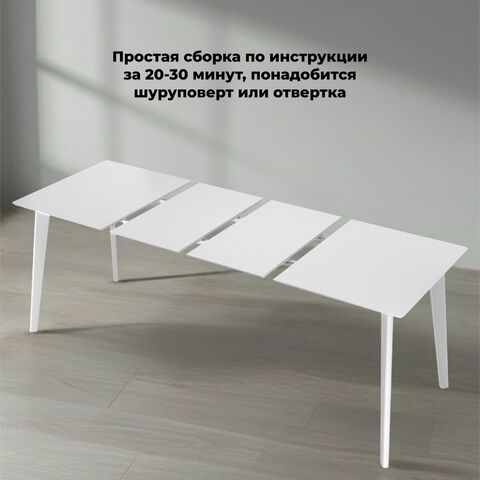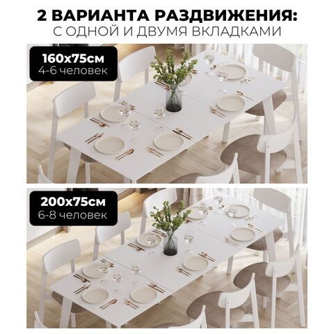 Надежный раздвижной механизм c деревянными направляющими скрыт внутри и позволяет быстро трансформировать стол до нужных размеров (160 см или 200 см на выбор).