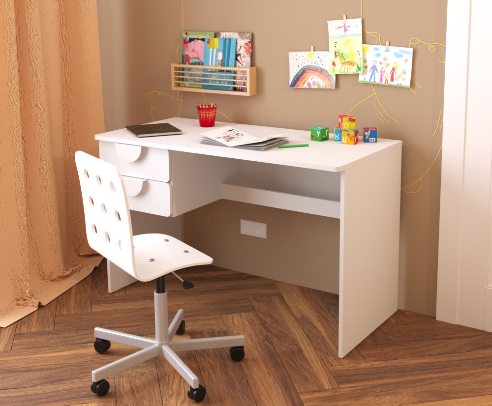 ПИКСИ, письменный стол с 2 ящиками, 120х57 см, белый