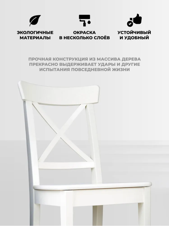 Крестообразная спинка и выгнутая горизонтальная перекладина стула обеспечивают правильную осанку.