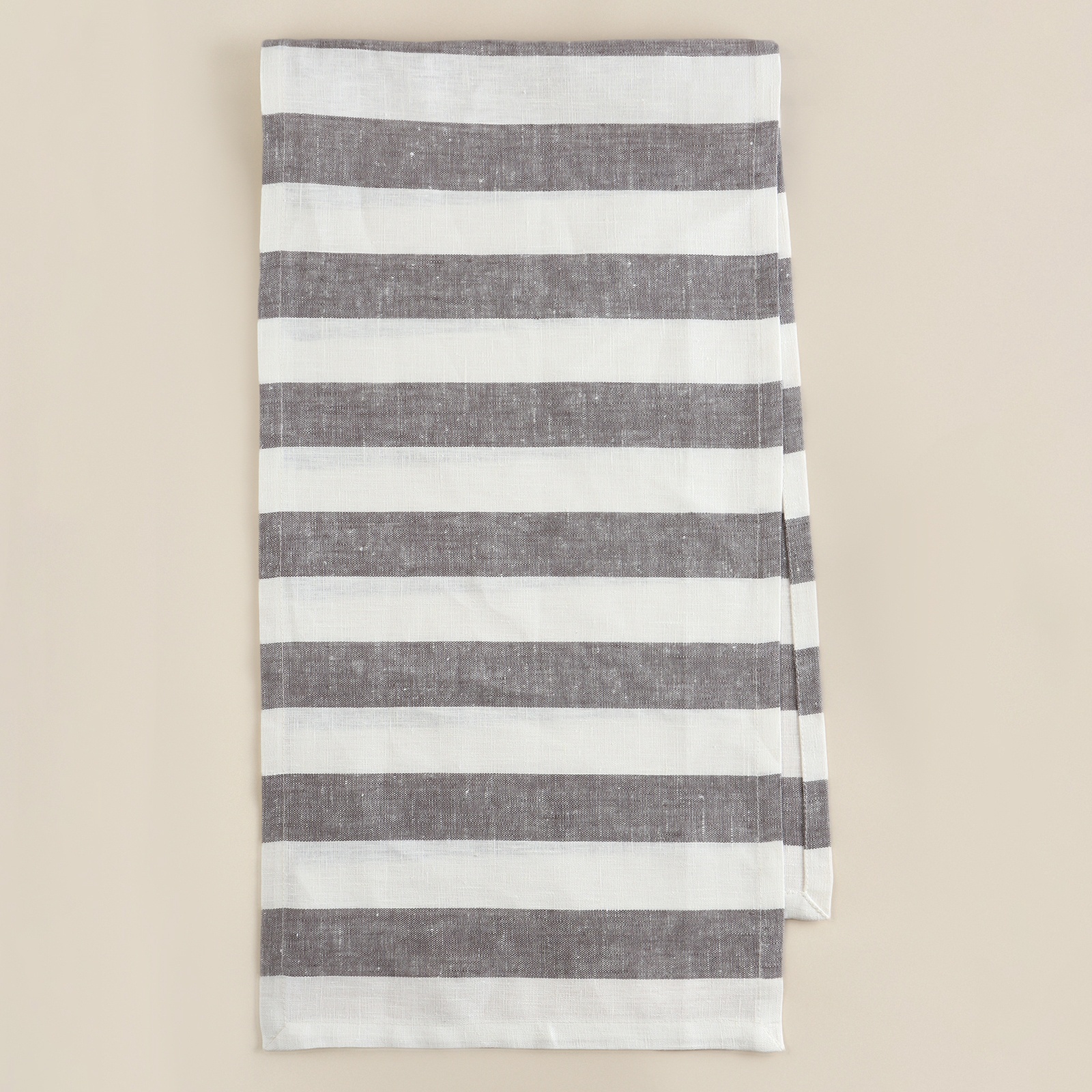 ЛИНЕН, дорожка на стол, лён, 40х142 см, серый/белый, полосы