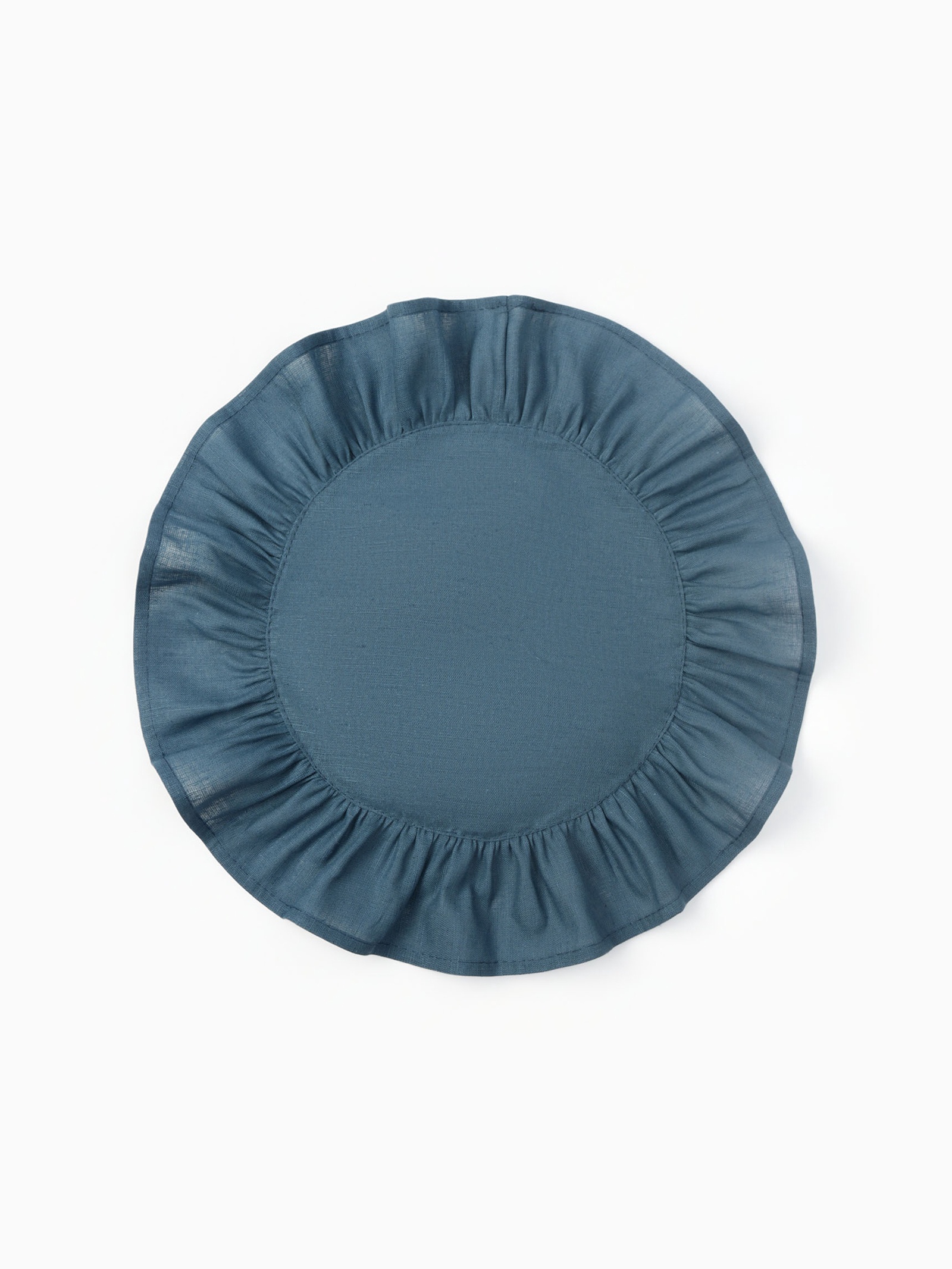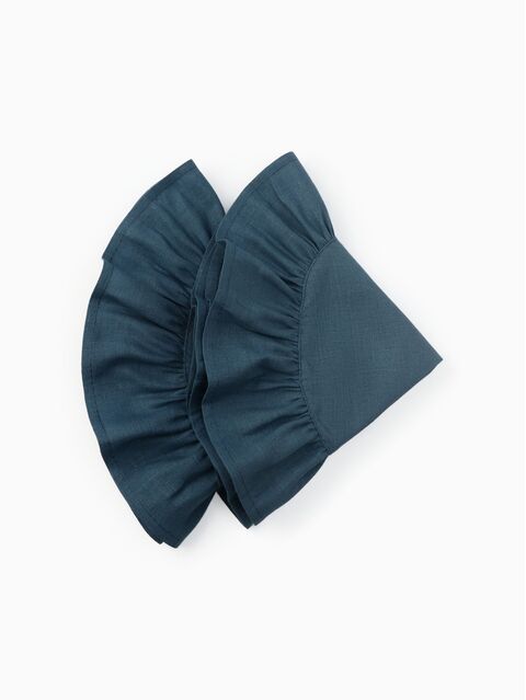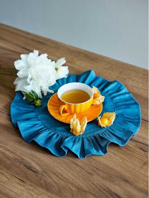 Эти круглые салфетки тёмно-бирюзового цвета добавят в сервировку стола лёгкую элегантность и природное тепло. Плотная, приятная на ощупь ткань с фактурой льна создаёт ощущение уюта и продуманной детали. Набор из двух салфеток подойдёт для ежедневных обедов или особых occasions.