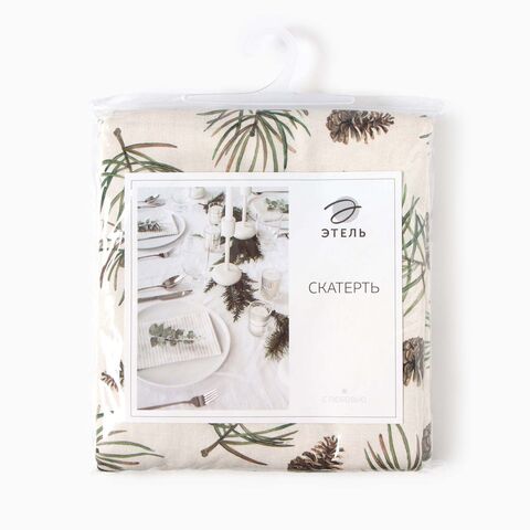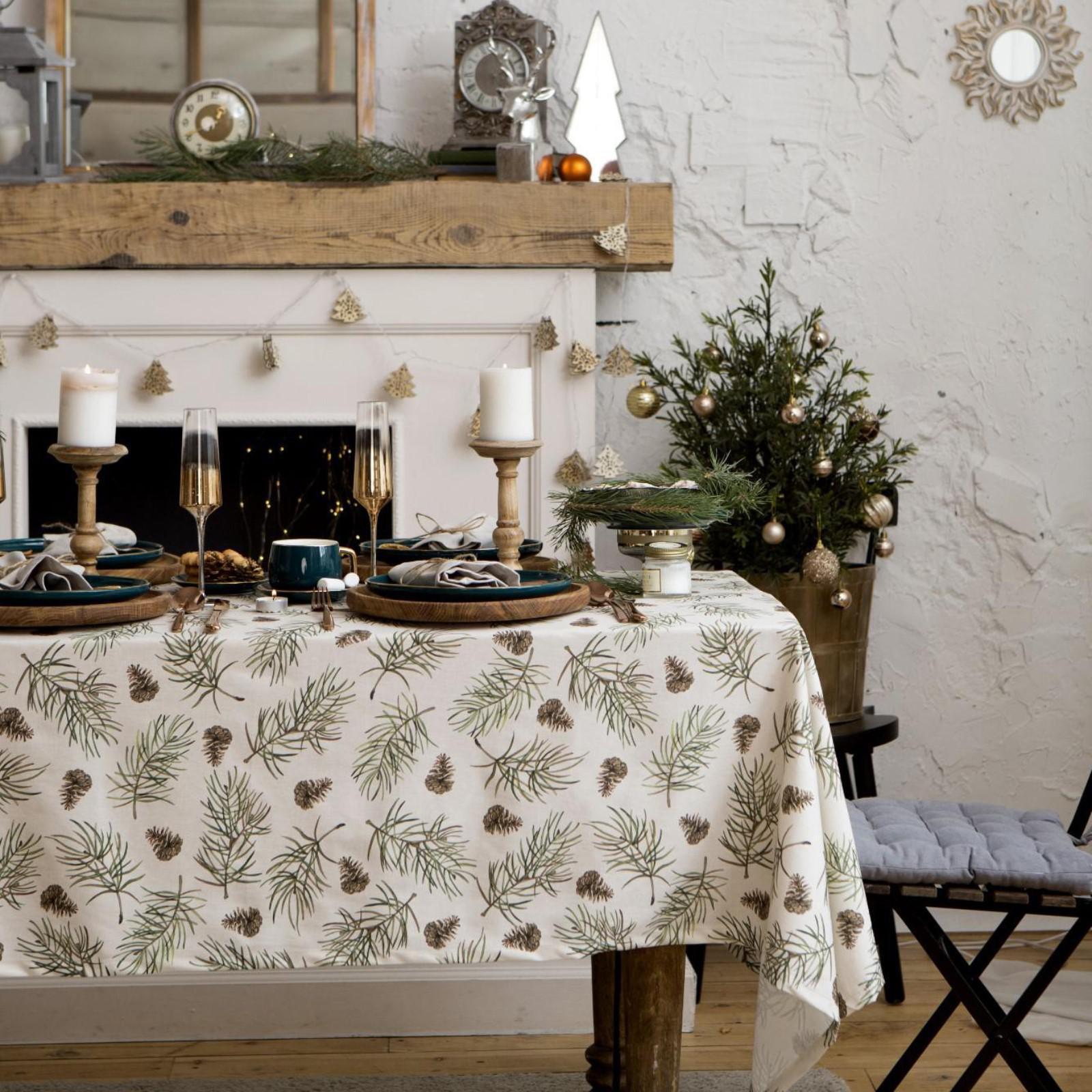 ВИНТЕР Шишки, скатерть, 147х220см, саржа, белый/зеленый