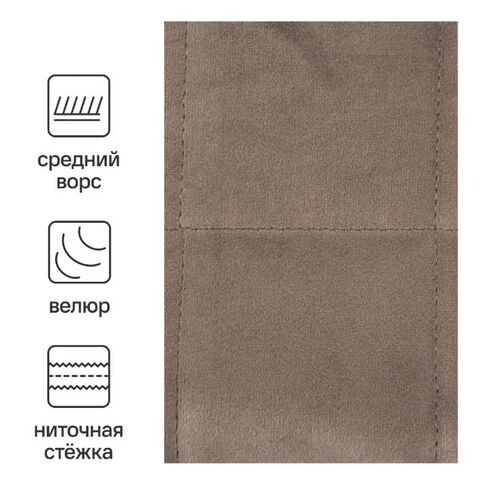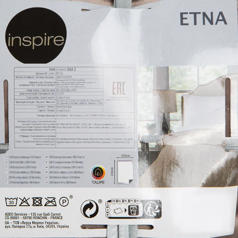 Покрывало изготовлено из прочного и износостойкого полиэстера. Не линяет и хорошо держит форму. Общая толщина — 1 см. Плотность материала — 280 г/м². Усадка после стирки составляет не более 2%. Страна производства — Китай.
