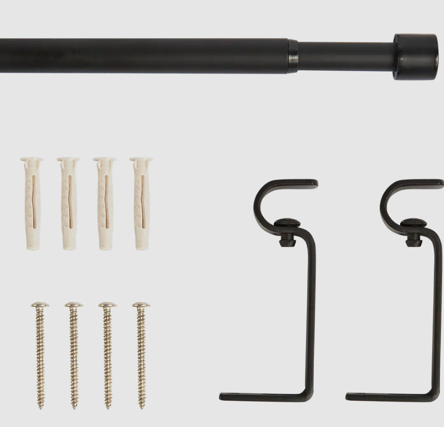 Штанга с наконечниками (1 шт., 2 шт.), кронштейн настенный - 2 шт., набор крепежа (саморезы с дюбелем) 4шт.