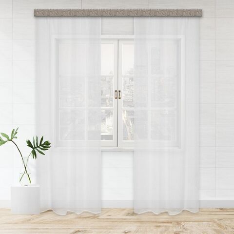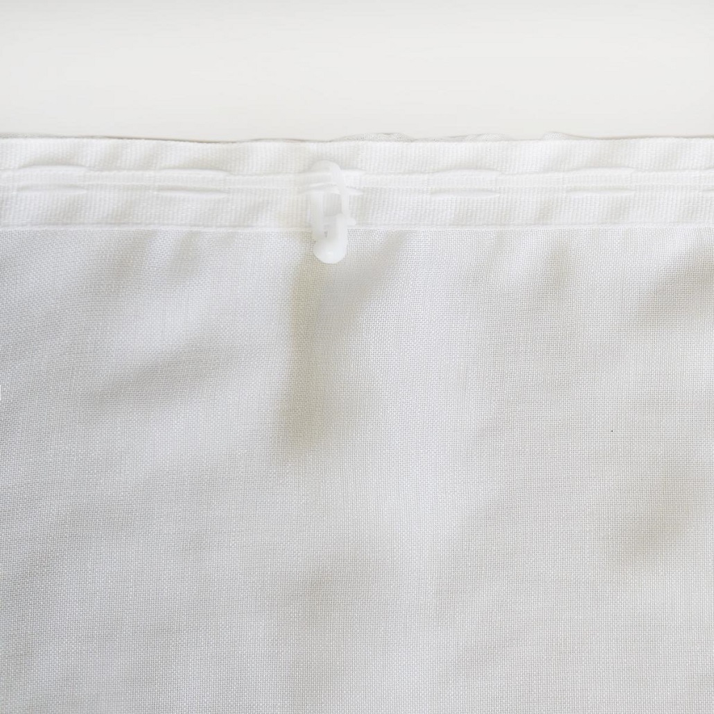 К шторе пришита шторная лента шириной 2 см, крепление к карнизу на крючки. Внутри шторной ленты пропущен шнур-корд для стягивания, он позволит красиво задрапировать складки.
