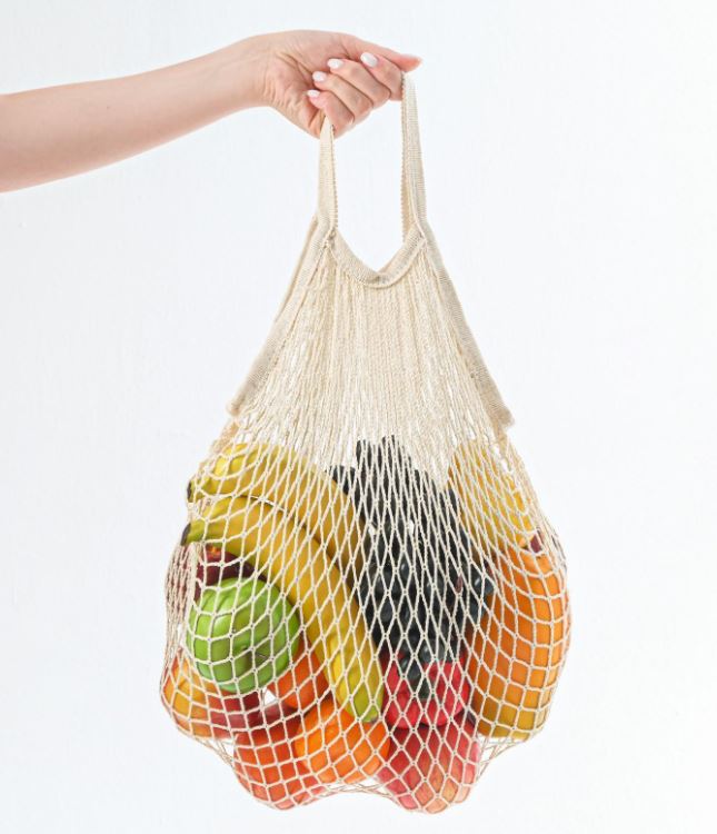 Сетчатые сумки из хлопка, произведенного с заботой о людях и природе, позволят вам обходиться без одноразовых пластиковых пакетов, а значит, уменьшить воздействие на климат. Кроме того, в таких сумках можно хранить фрукты и овощи.