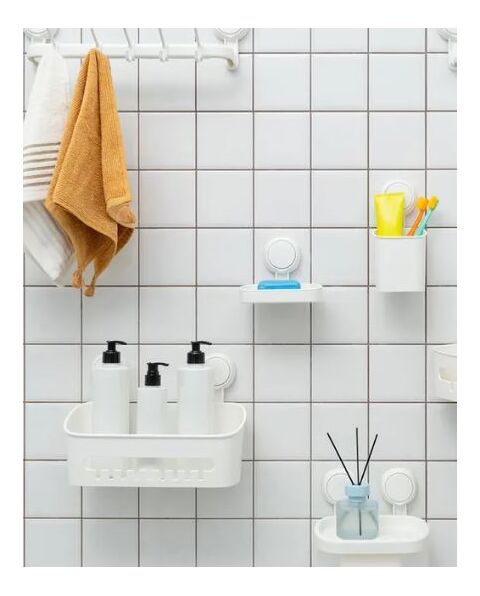 Прямая корзина для самого необходимого, многоразовые вакуумные присоски абсолютно безопасны для поверхностей в местах крепления и фиксируются без сверления. Снизу расположены специальные отверстия для пропуска воды и лучшей циркуляции воздуха, что обезопасит хранящиеся в корзине вещи от излишней влаги. На поверхности пластика не остается следов влаги и белого налета. Подходит для размещения на гладких поверхностях: керамическая плитка, стекло, зеркало, металл, пластик.