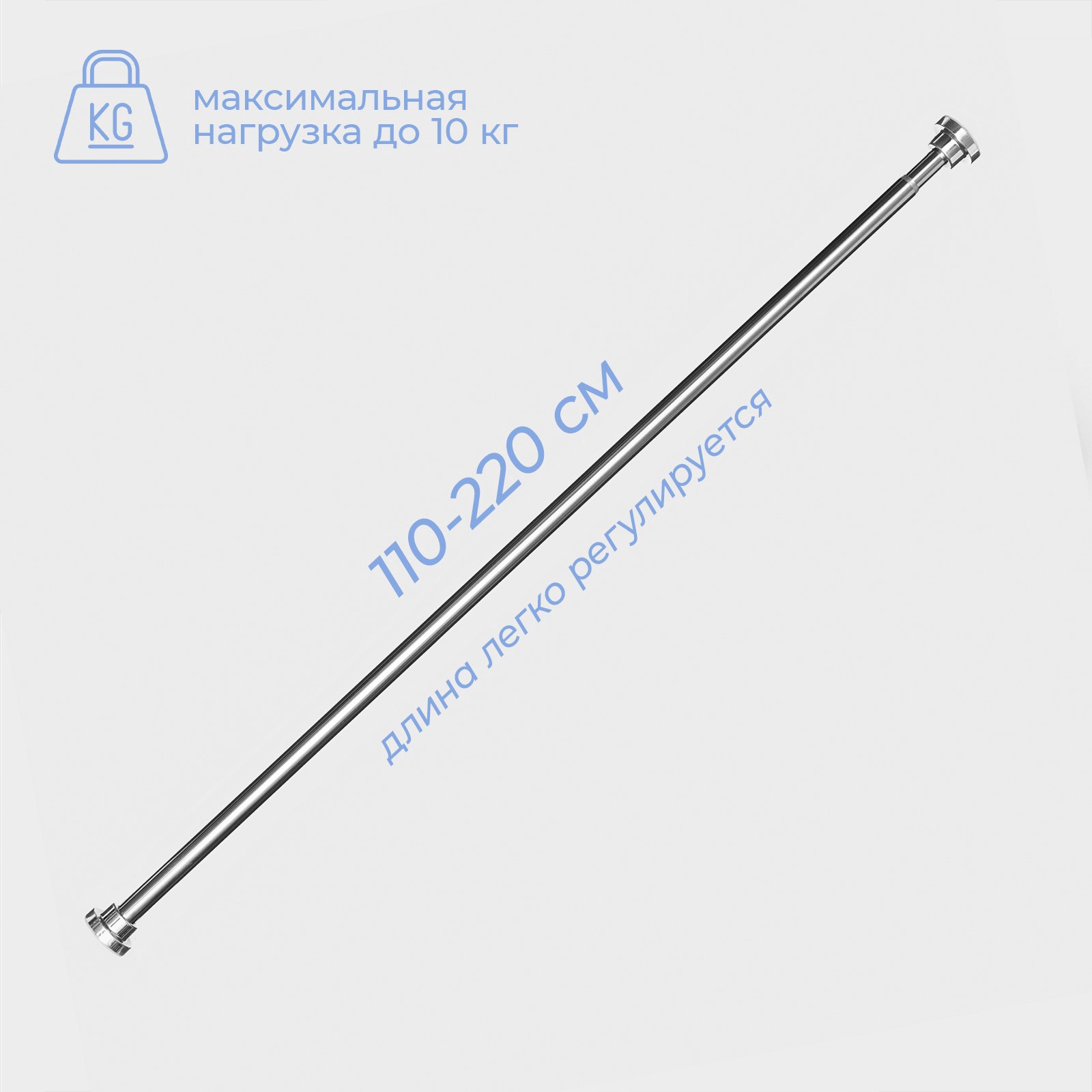 Данный карниз с возможностью регулировки длины от 110 до 220 см позволяет адаптироваться под ваши уникальные условия, что делает его универсальным решением для различных пространств. Благодаря прочному материалу, он обеспечит долговечность и надежность, необходимую для ежедневного использования.
